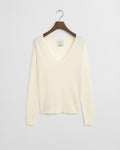 Knitted in extra fine merino wool for a super soft touch and lightweight feel, this sweater is an everyday essential designed to be layered over shirts or worn alone. Made for a regular fit in a plain jersey structure, it features a classic V-neck, ribbed detailing, and a GANT logo embroidered at the sleeve.