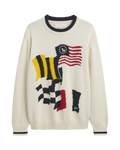 Crafted in mid-weight cotton, this sweater features a colorful flag intarsia design placed at the body. Other design elements include a classic crew neck, contrast stripe detailing and rib endings at the hem and cuffs. This garment is intended for a relaxed fit. For a closer fit, we recommend sizing down.
