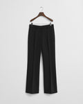 Endlessly wearable, these slacks are crafted with a touch of comfort stretch. Slim over the hips, these pants have a mid-rise waist and a flared leg. Design features include front slanted pockets, back welt pockets, crease detailing and a zip closure with a hook-and-bar fix.