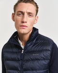 Crafted in a lightweight recycled polyester with a water-repellent finish, this Light Down Vest adds a perfect layer of warmth when the temperatures suddenly drop. With a length that falls slightly above the hips, interior zip and patch pockets and its straight channel quilting, this vest is a must-have for cooler mornings or evenings out after sundown. This vest features a Durable Water Repellent (DWR) treatment which will help to shed water in light weather conditions. If you're unexpectedly caught in a downpour, please follow the care instructions closely to restore the performance and prolong the life of this garment. It features a 650-fill-power down and has light insulation.