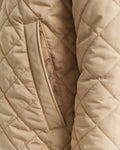 Crafted in a diamond quilting structure, this Quilted Windcheater Jacket features recycled polyester padding and is treated with a water-repellent finish. Design details include a one-way zipper at the front, snap buttons at the collar, slanted welt side pockets and an elasticated hem and cuff with a press button adjuster. This windcheater features a Durable Water Repellent (DWR) treatment which will help to shed water in light weather conditions. If you're unexpectedly caught in a downpour, please follow the care instructions closely to restore the performance and prolong the life of this garment.