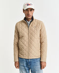 Crafted in a diamond quilting structure, this Quilted Windcheater Jacket features recycled polyester padding and is treated with a water-repellent finish. Design details include a one-way zipper at the front, snap buttons at the collar, slanted welt side pockets and an elasticated hem and cuff with a press button adjuster. This windcheater features a Durable Water Repellent (DWR) treatment which will help to shed water in light weather conditions. If you're unexpectedly caught in a downpour, please follow the care instructions closely to restore the performance and prolong the life of this garment.