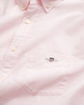 Crafted in a durable poplin weave, this classic shirt is essential to any preppy wardrobe. The design features an '80s-inspired GANT shield graphic embroidered at the chest pocket and a curved hem.
