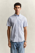 Crafted in a durable poplin weave, this classic cotton shirt is essential to any preppy wardrobe. Cut for a regular fit, this shirt is designed with short sleeves for the warmer, summer months. It features a button-down collar, curved hem, a chest pocket with shield embroidery and a box pleat with a locker loop at the back.