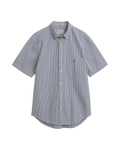 Fashioned with a weaved seersucker striped design, this short sleeved shirt is cut for a regular fit and features a classic button-down collar. Adorned with a GANT shield graphic at the chest pocket, the design also includes a curved hem and a box pleat with our signature locker loop at the back.
