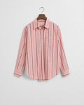 Crafted in certified cotton poplin, this shirt is patterned with an all-over striped print. Delivering a relaxed, smart-casual silhouette, it features a point collar, curved hem, chest pocket and a subtle GANT logo embroidered at the sleeve placket. This garment is intended for a relaxed fit. For a closer fit, we recommend sizing down.