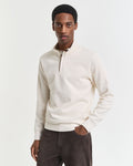 Dressier than a sweatshirt but just as comfortable, this piece is perfect for layering over shirts at the office or over T-shirts on the weekend. Cut from 100% cotton with a soft hand-feel, it is designed for a regular fit with a half-zip collar. Details include imitation suede detailing, a silver metal zip and a tonal GANT logo embroidered at the chest.