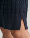 Made from a soft cotton blend and crafted with a twisted cable knit design, this timeless dress is cut for a relaxed fit and finishes right at the knees. Fashioned with a crew neck, it features side slits at the bottom hem and a tonal GANT logo embroidered at the sleeve, Pair this piece together with your favorite boots for a fall-winter look. This garment is intended for a relaxed fit. For a closer fit, we recommend sizing down.